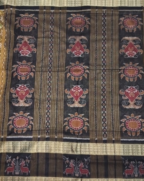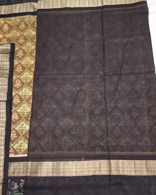 Mehendi & Black Combination Top Design Sambalpuri Saree. Or Soft Sambalpuri Cotton Saree With Blouse Pices