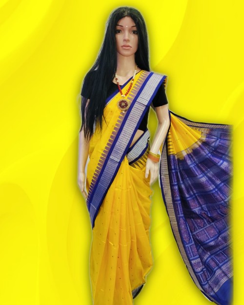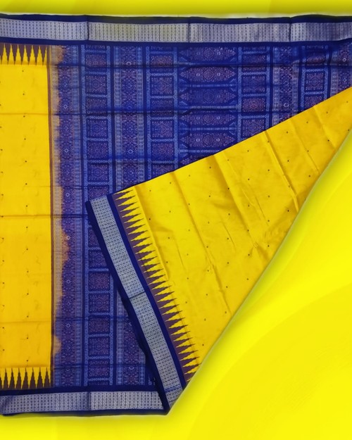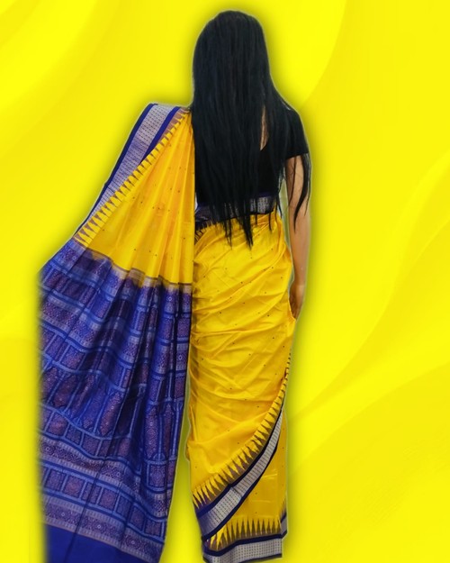 Sambalpuri Pata Saree. Lemon Yellow With Blue Colour Combination