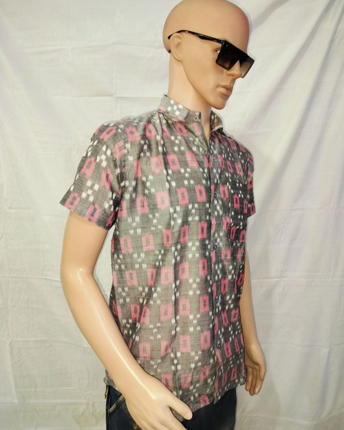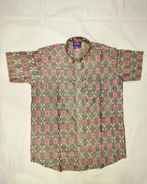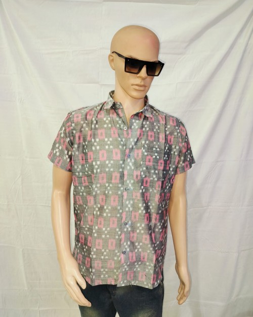 Sambalpuri Gents Half Shirt. Grye With Red Colour Combination