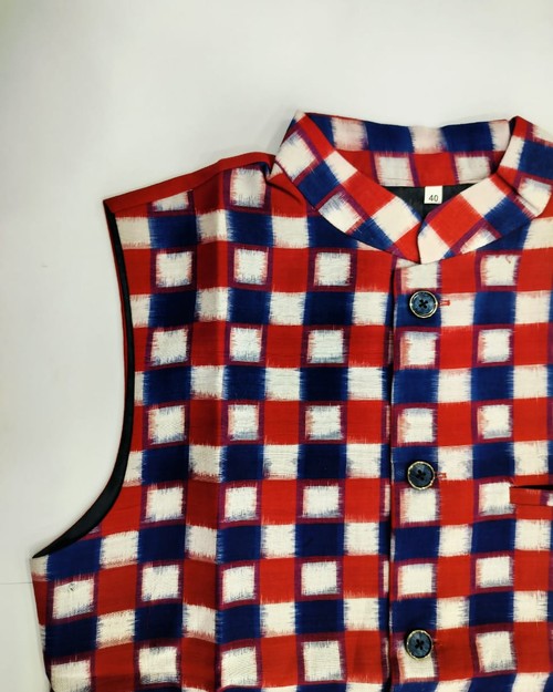 sambalpuri Trending Men's Fashion Modi Jacket . Red Blue Combination