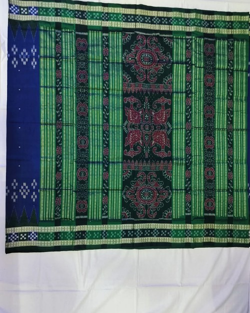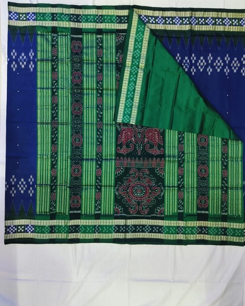 Sambalpuri Border Pasapli Pata Saree With Blouse Pieces Blue Green Combination
