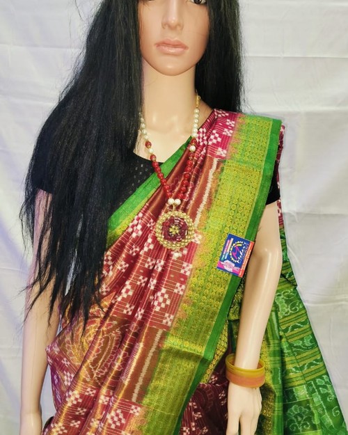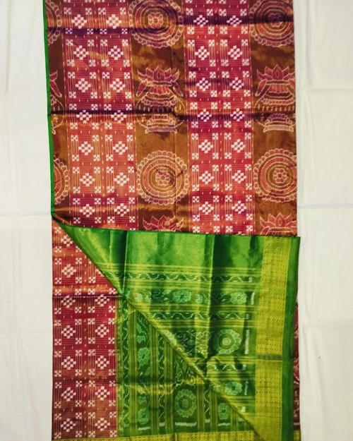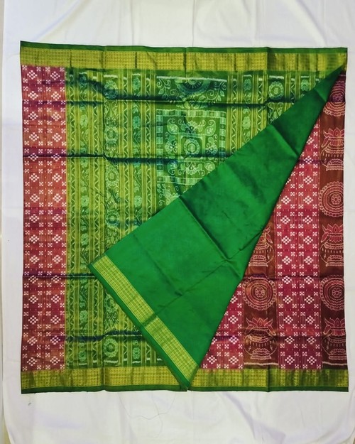 Sambalpuri Tisu Pata Saree With Blouse Pices Purple & Green Colour Combination