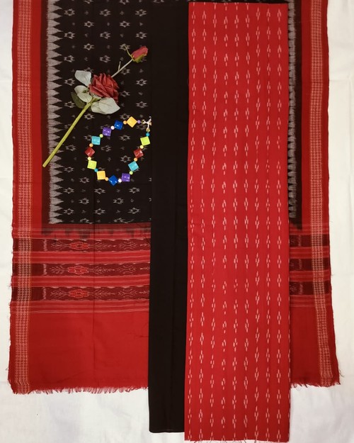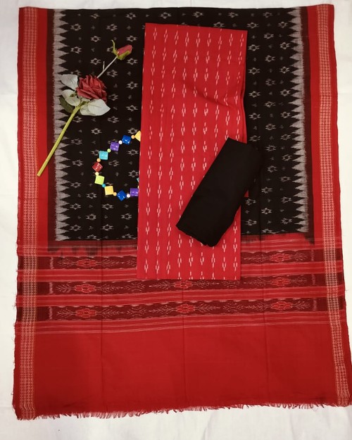Sambalpuri Dress Meterial Black Red Combination Dress Meterial With Design Duppta