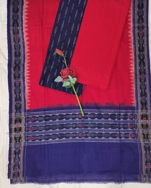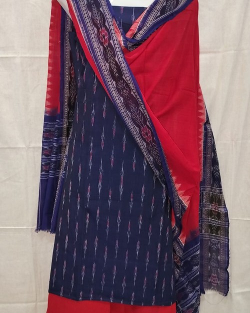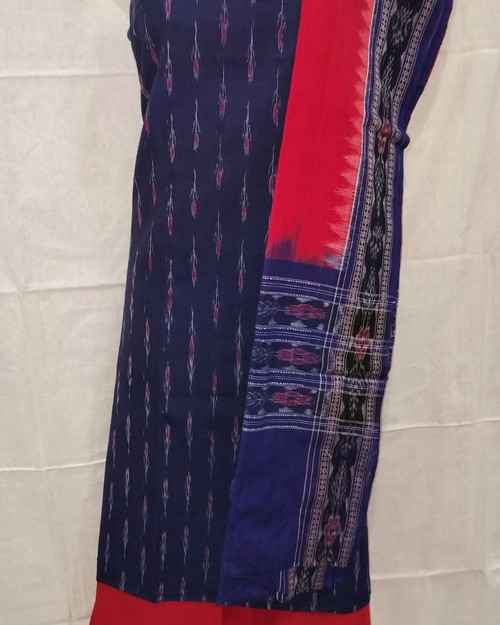 Sambalpuri Dress Meterial Blue Red Paper Design Dress Meterial