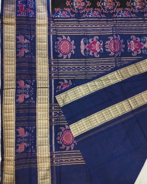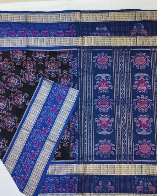 Sambalpuri Double Border Black With Blue Fish Border With Blouse Pices