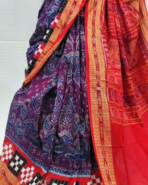Samblpuri Pasapli Border Purple Red Combination Saree With Blouse