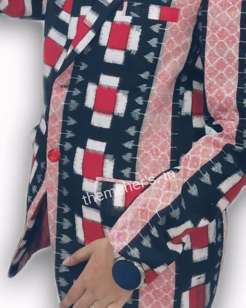Sambalpuri Pasapli Design Ladies Blazer Red Black & Off Colour Combination