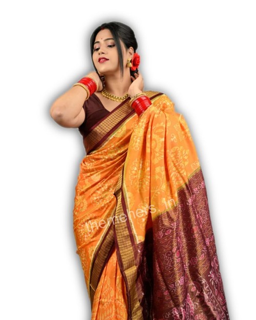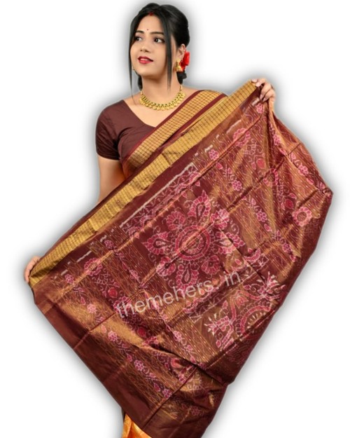 Sambalpuri Half Tisu Pata Saree With Blouse Work.Golden Thread Work .