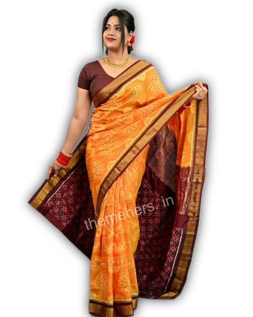 Sambalpuri Half Tisu Pata Saree With Blouse Work.Golden Thread Work .
