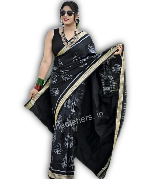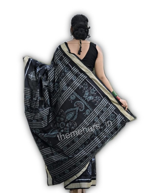 Sambalpuri Pure Pata Saree. New Black Self Colour Combination Leaf Work